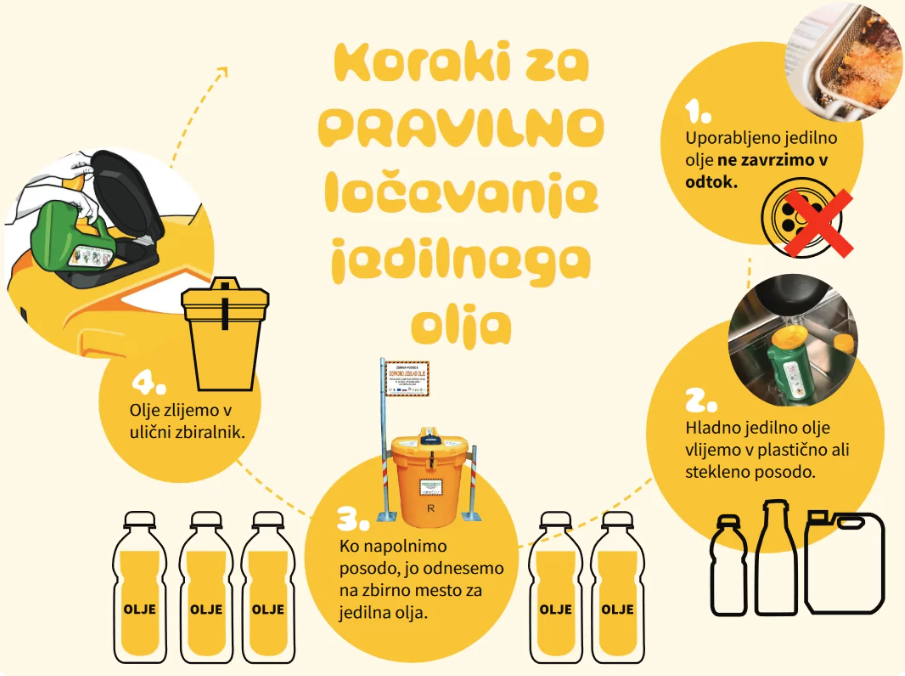 Tega nikoli ne počnite. Že liter napačno odloženega odpadnega jedilnega olja lahko onesnaži milijon litrov vode. V pustnem času nastane v gospodinjstvih več odpadnega jedilnega olja, ki ga pravilno odložimo na zbiralnih mestih.