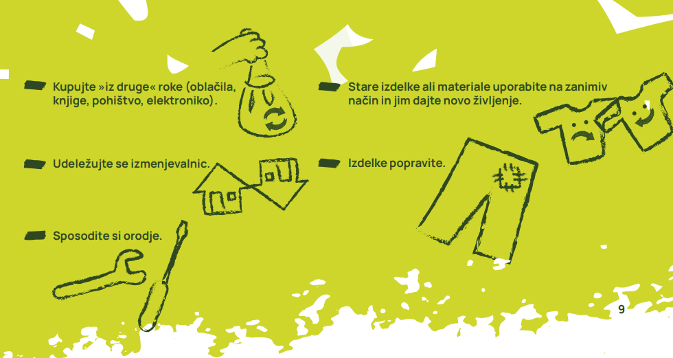 Uporabljajte izdelke za večkratno uporabo, kupujte rabljene in predelane izdelke.