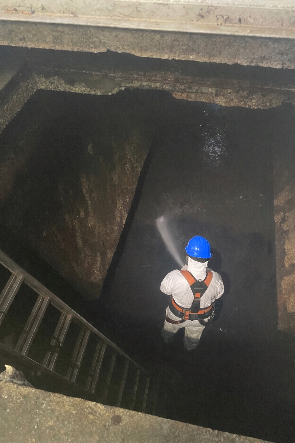 V Sektorju za odvajanje in čiščenje odpadnih vod smo opravili temeljito pranje zadrževalnih bazenov.