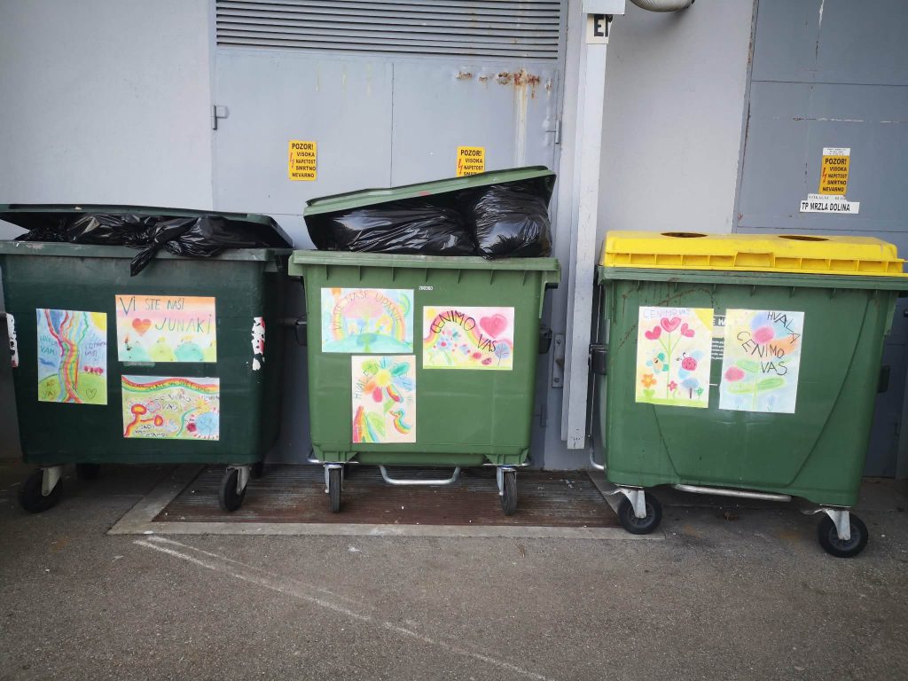 Zanj so poskrbeli tretješolci iz novomeške OŠ Drska. Med podaljšanim bivanjem so ustvarili likovne izdelke na temo varovanja okolja in jih opremili s prijaznimi sporočili. Z njimi so okrasili šolske komunalne zabojnike. "Spoštujemo vas. Cenimo vaše delo, ki ohranja naše okolje čisto..."