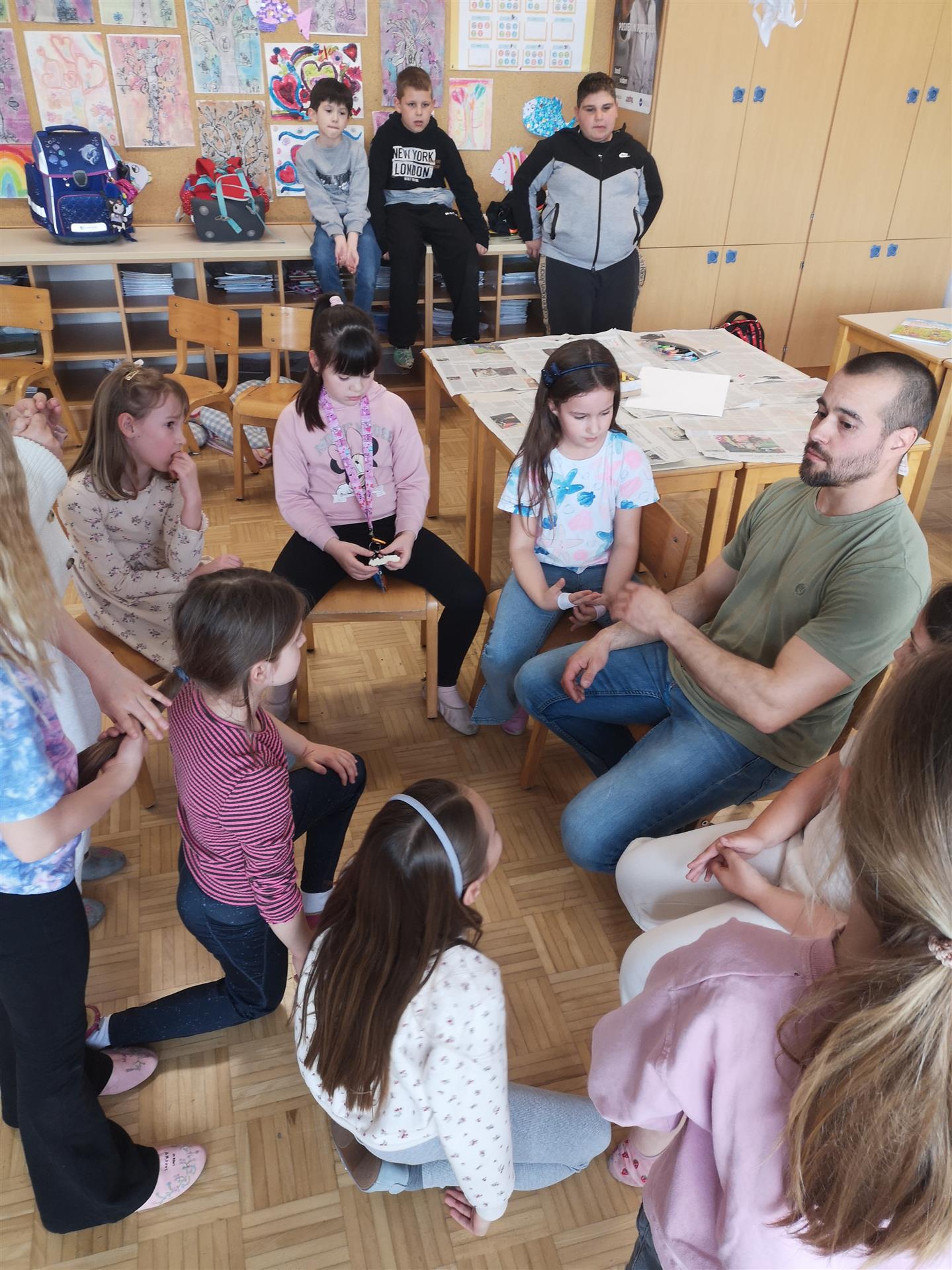 Na obiskom našega sodelavca so navdušeni tudi v šoli. V nadaljevanju objavljamo čustven odziv učiteljice podaljšanega bivanja Simone Tasič: ˝Nad Davidovim obiskom sem povsem navdušena in ganjena. Hvaležna, da je otrokom pričaral tako topel, svež in srčen dogodek, poln smeha, dobre volje in razigranosti. Tako lepega dogodka za otroke še nisem doživela. Vključil se je v vsako otroško spontano dejavnost, ki so kar vrele iz njihovih src in glavic in s tem pokazal mnogo svojih talentov in darov. Zame največji je njegov dar biti človek s srcem, toplino, iskrenostjo, odprtostjo in ljubeznijo do človeka, narave in živali. Njegova strast do dela, ki ga opravlja in njegova življenjska energija sta v meni pustila velik pečat. Svet bi bil veliko lepši, čistejši, predvsem pa bolj prijazen, če bi vsi imeli tako veliko srce, kot David.˝